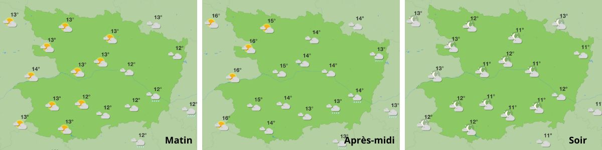 Le ciel sera largement couvert dès la matinée et les éclaircies vont progressivement s’estomper. Dans l’après-midi, un front pluvieux devrait se développer sur la partie est du département. La soirée sera elle aussi très nuageuse. Les températures seront comprises entre 12°C et 14°C en moyenne. Nous fêterons les Constant !