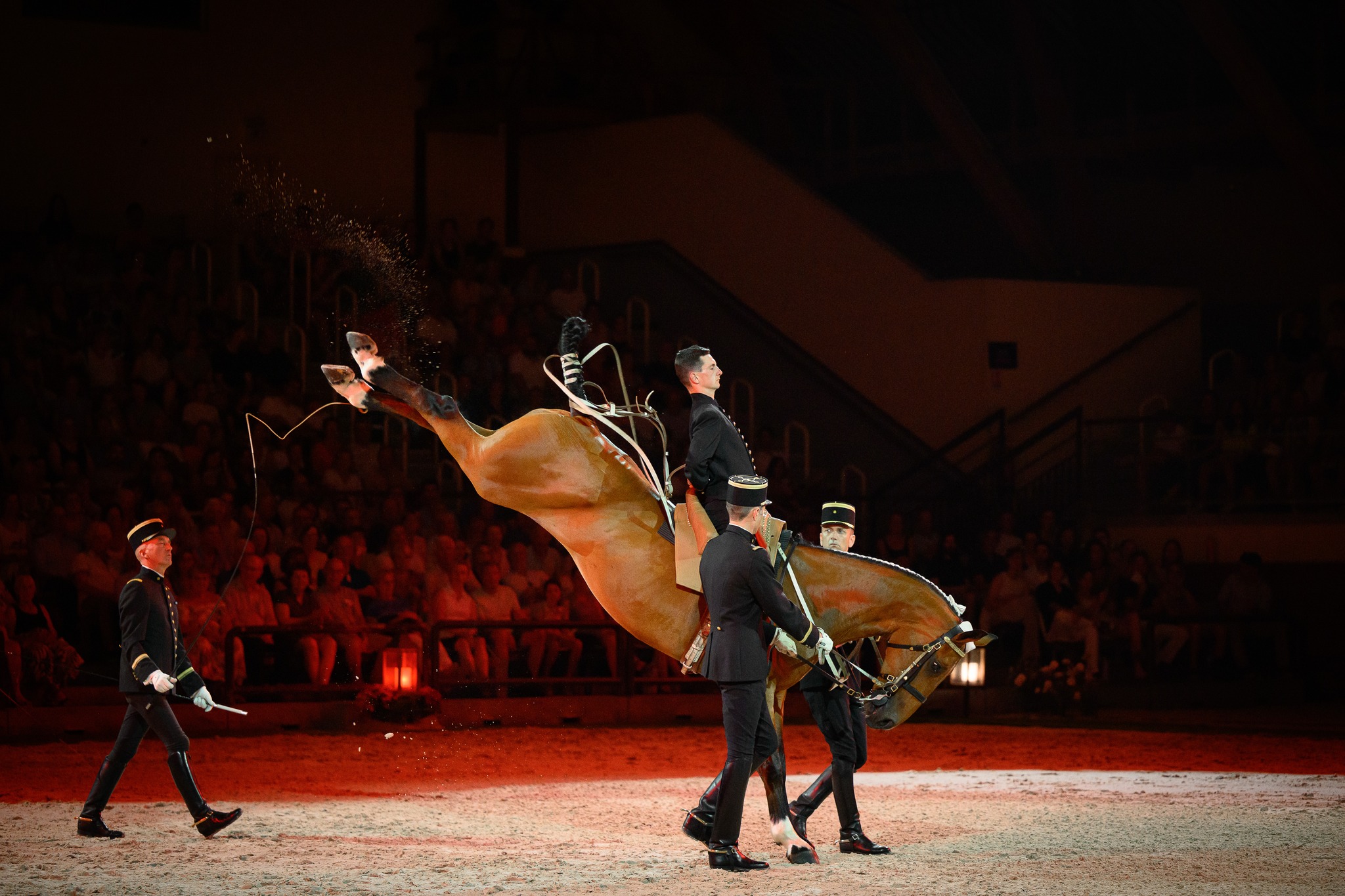 Un jeune élève écuyer va recevoir une cravache à trois viroles à l’occasion du gala du Bicentenaire le samedi 18 octobre dans le Grand Manège des...