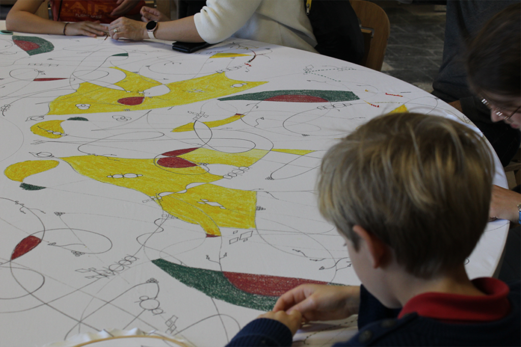 Parents et enfants sont invités à participer à l’élaboration d’une œuvre artistique collective, en partant d’un scénario préalablement imaginé par l’artiste invité par Fontevraud. Tout le monde est convié à entrer dans cet Atelier 1101, pour exprimer sa créativité, son envie de faire, inspiré par les lieux par les artistes et leur installation, pour échanger ou simplement regarder, apprécier un dispositif collectif de création. L’objectif : en groupe d’amis, en famille, en couple : faire ensemble, regarder puis reproduire des gestes artistiques et voir ensuite sa production individuelle, personnelle, rejoindre une installation collective…