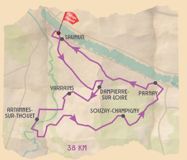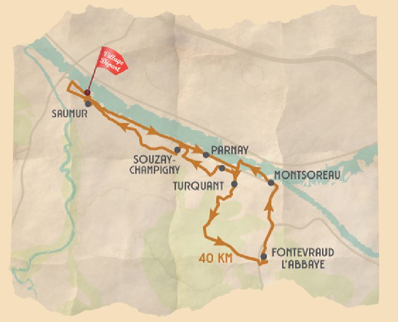 Les Frères Duchemin : Amoureux de la nature, les frères Duchemin vous invitent sur un parcours entre vignes et clos de tuffeau. La convivialité règne sur cette randonnée champêtre ! Comme Félicien, Germain et Lucien, assurez-vous d’avoir des pneus assez robustes pour résister aux chemins de cailloux qui serpentent entre les vignes. Ce circuit de 35km passe presque exclusivement sur des chemins. Au programme : La célèbre route des vins ; La maison forte de la Bouchardière (XIIè siècle) ; De conviviaux domaines viticoles ; L’emblématique Château de Saumur. Départs le samedi 27 juin à 9h45 et 11h15 et le dimanche 28 juin à 10h45.