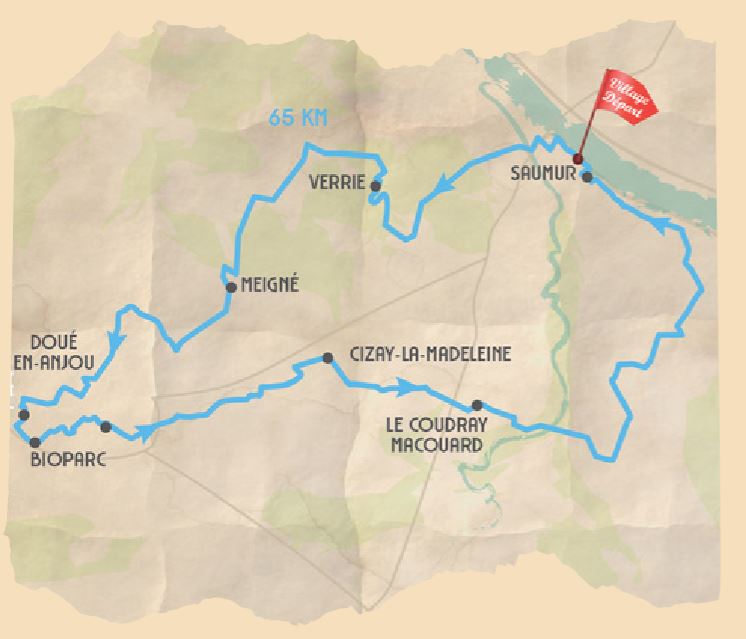 Les Sœurs La Rustine : Si vous avez la gambette affûtée, et l’envie de sortir des sentiers battus, lancez-vous à l’assaut des 65 kilomètres. Des ravitaillements festifs viendront récompenser vos efforts, avec notamment une pause dépaysante parmi les animaux du Bioparc de Doué-la-Fontaine. Sur le parcours : Le Bioparc et ses animaux ; De charmants bourgs en pierre de tuffeau ; La magnifique roseraie de Doué-en-Anjou ; Une pause de verdure à l’hippodrome de Verrie. Départs le samedi 27 juin à 8h30 et 9h15.