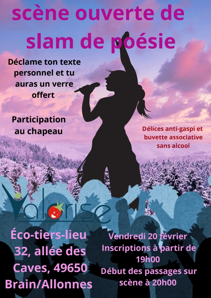 Après le succès de sa première édition, l’association Valorise proposera une deuxième scène ouverte de slam de poésie au cœur de son tiers-lieu de Brain-sur-Allonnes. « Vous allez pouvoir monter sur scène pour déclamer votre poésie personnelle devant un public bienveillant. Alors lâchez vous ! Prenez un crayon, un papier, entraînez vous devant votre miroir et venez nous partager votre univers en toutes libertés. En solo, en duo, en trio… en tremblant, en murmurant, en parlant, en criant, en mimant, en dansant, en signant en chantant… Venez nous faire pleurer, enrager, râler, nous indigner, nous faire sourire, nous faire chanter, nous faire rêver, nous faire rire… Ou alors venez soutenir les Slameuses et les slameurs, les poètes et les poétesses en les écoutant et alors… pleurez, applaudissez, amusez vous et venez rire… », souligne l’association. Ce nouveau rendez-vous se déroulera le vendredi 20 février 2026.