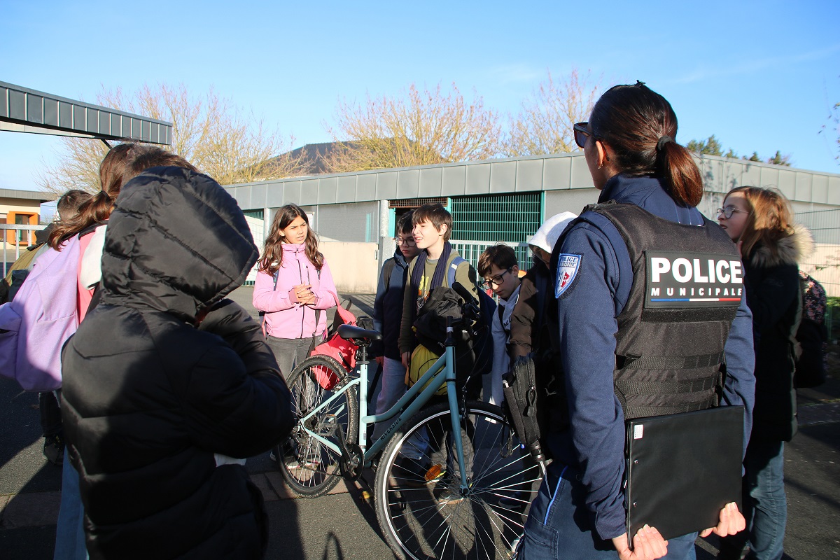 Lauréate du programme Petite Ville de Demain, la commune de Doué-en-Anjou poursuit son engagement en faveur de la transition environnementale, en portant une attention particulière aux mobilités douces et aux déplacements du quotidien. Dans cette objectif, un Schéma Directeur des Mobilités actives et alternatives a été réalisé en 2022, permettant notamment l’installation de 200 appuis vélos aux abords des sites publics, ainsi que la sécurisation des abords d’écoles et la création de nouvelles bandes cyclables. Au-delà des infrastructures, la commune souhaite encourager la pratique du vélo par des actions de sensibilisation. Après le déploiement du dispositif national « Savoir rouler à vélo » auprès des CM2 par la police municipale, l’association Doué Anjou Cyclisme et la Direction éducation action sociale, et l’organisation de temps forts lors de « Mai à vélo » pour les CM1-CM2 par le service mobilités et la Direction éducation action sociale, la commission Mobilités a souhaité élargir cette démarche auprès des collégiens. C’est pourquoi une action de prévention a été proposée aux élèves de 6e du collège Lucien Millet lundi 24 novembre, par le service enfance jeunesse, la police municipale et le service mobilités, avec un message central : être visible à vélo, c’est renforcer sa sécurité. Au programme : présentation du contexte de cette rencontre, démonstration de réflecteurs sur un vélo équipé, rappel des équipements réglementaires et contrôle possible des vélos des élèves par la police municipale, puis distribution gratuite de réflecteurs et d’un flyer d’information rappelant les règles essentielles d’équipement et de protection pour les déplacements à vélo et à trottinette. Cette action de prévention sera également réalisée auprès des élèves de 6e du collège Saint-Joseph en 2026.