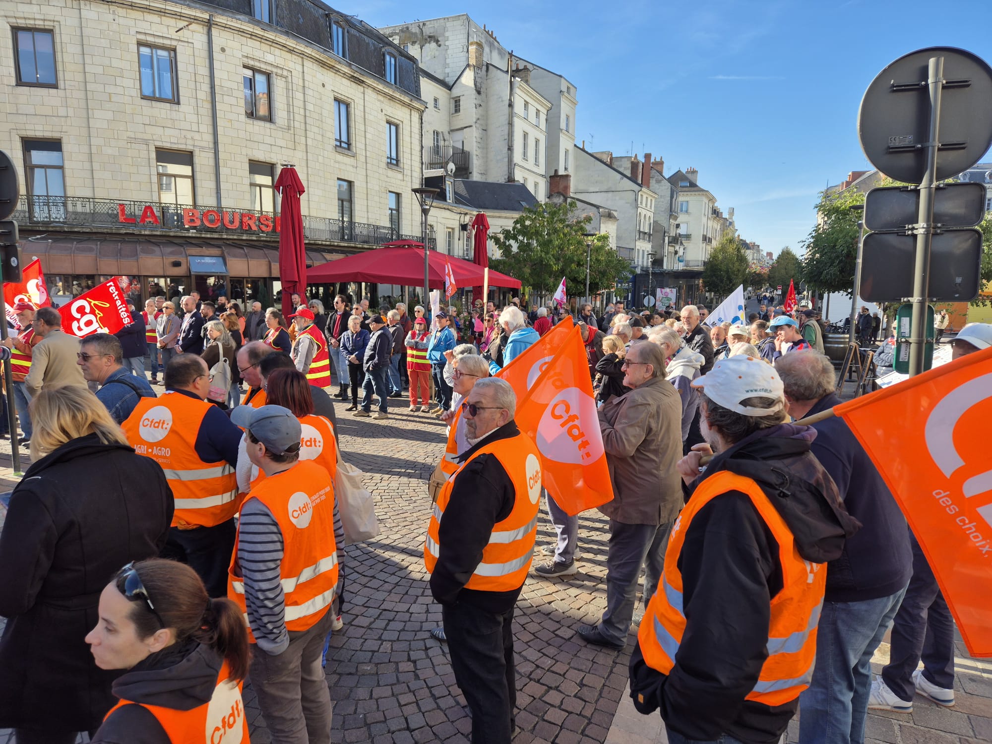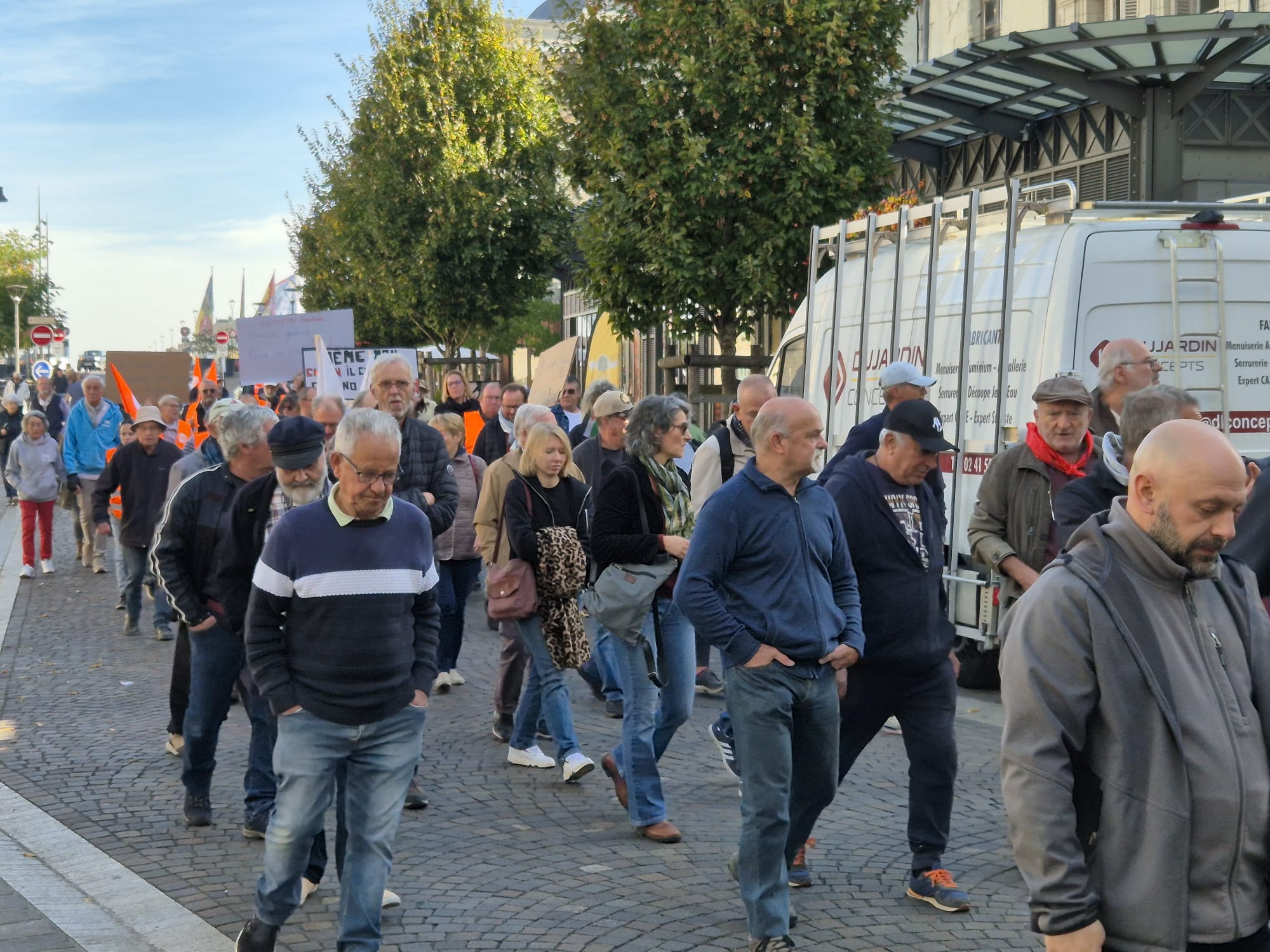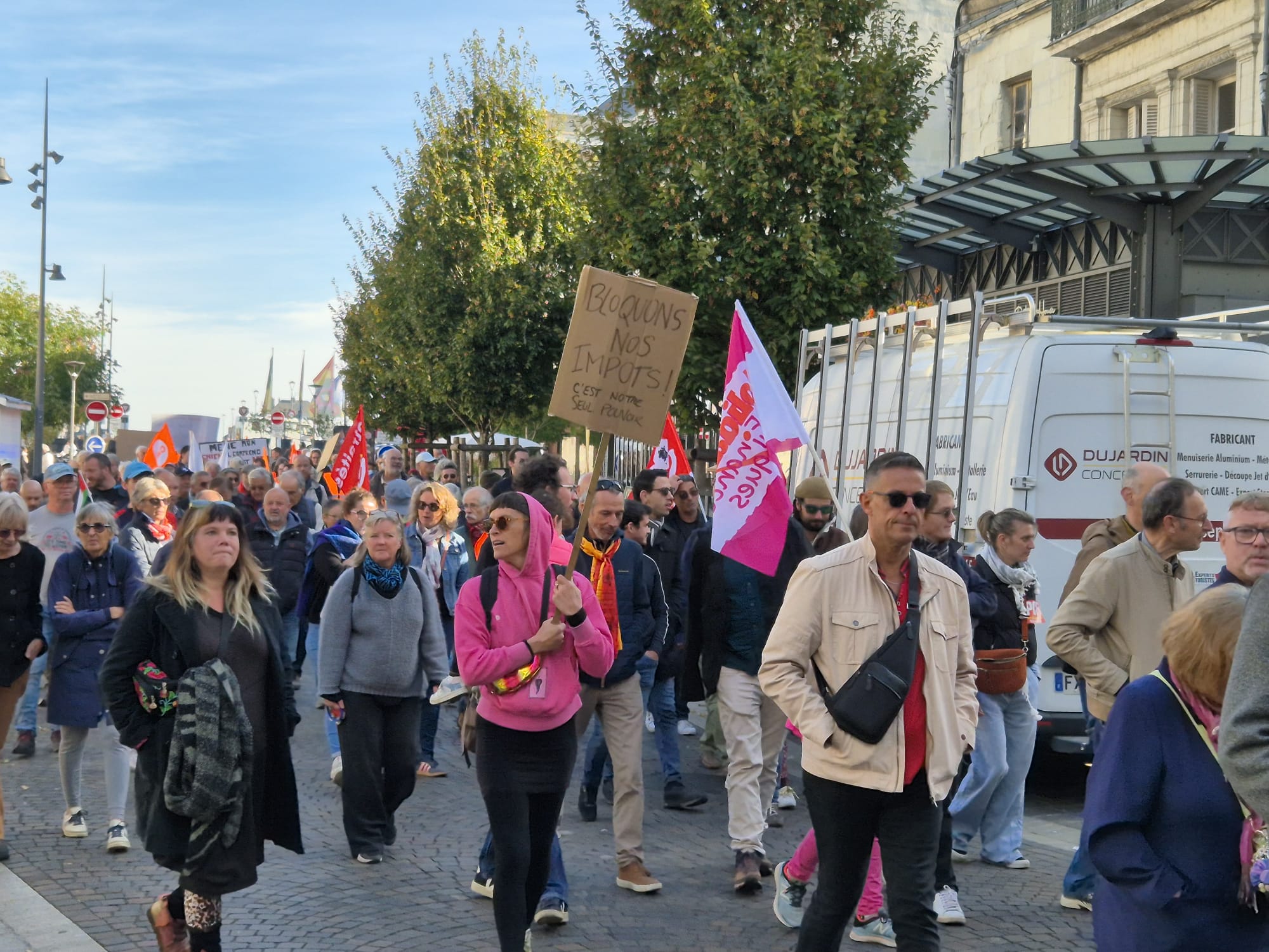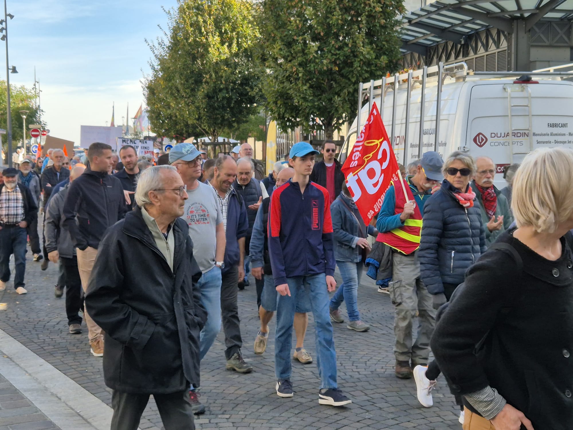Ce jeudi 2 octobre, en écho aux précédentes journées de mobilisation des 11 et 18 septembre, l’intersyndicale avait donné rendez-vous pour une nouvelle manifestation. Toutefois, le mouvement a été moins suivi qu’en septembre dernier puisque l’on dénombrait 200 manifestants ce jeudi contre plus de 500 de la 18 septembre dernier. Le mot d’ordre reste malgré tout le même. L’intersyndicale exige : « L’abandon de l’ensemble du projet de budget et notamment le doublement des franchises médicales, l’année blanche (désindexation des pensions, des prestations sociales, des salaires des agent·es de la fonction publique et du budget des services publics), la suppression de 3000 postes de fonctionnaires et la réforme de l’assurance chômage, ainsi que des projets attaquant le code du travail, et le 1er mai ; La justice fiscale, avec la mise en place de dispositifs qui taxent les gros patrimoines et les très hauts revenus, et contraignent le versement des dividendes ; La conditionnalité sociale et environnementale des 211 milliards d’euros d’aides publiques aux entreprises privées ; Des moyens budgétaires à la hauteur pour les services publics partout sur le territoire ; Une protection sociale de haut niveau et l’abandon du recul de l’âge légal de départ à la retraite à 64 ans ; Des investissements dans une transition écologique juste et la réindustrialisation de la France, et des mesures contre les licenciements. »