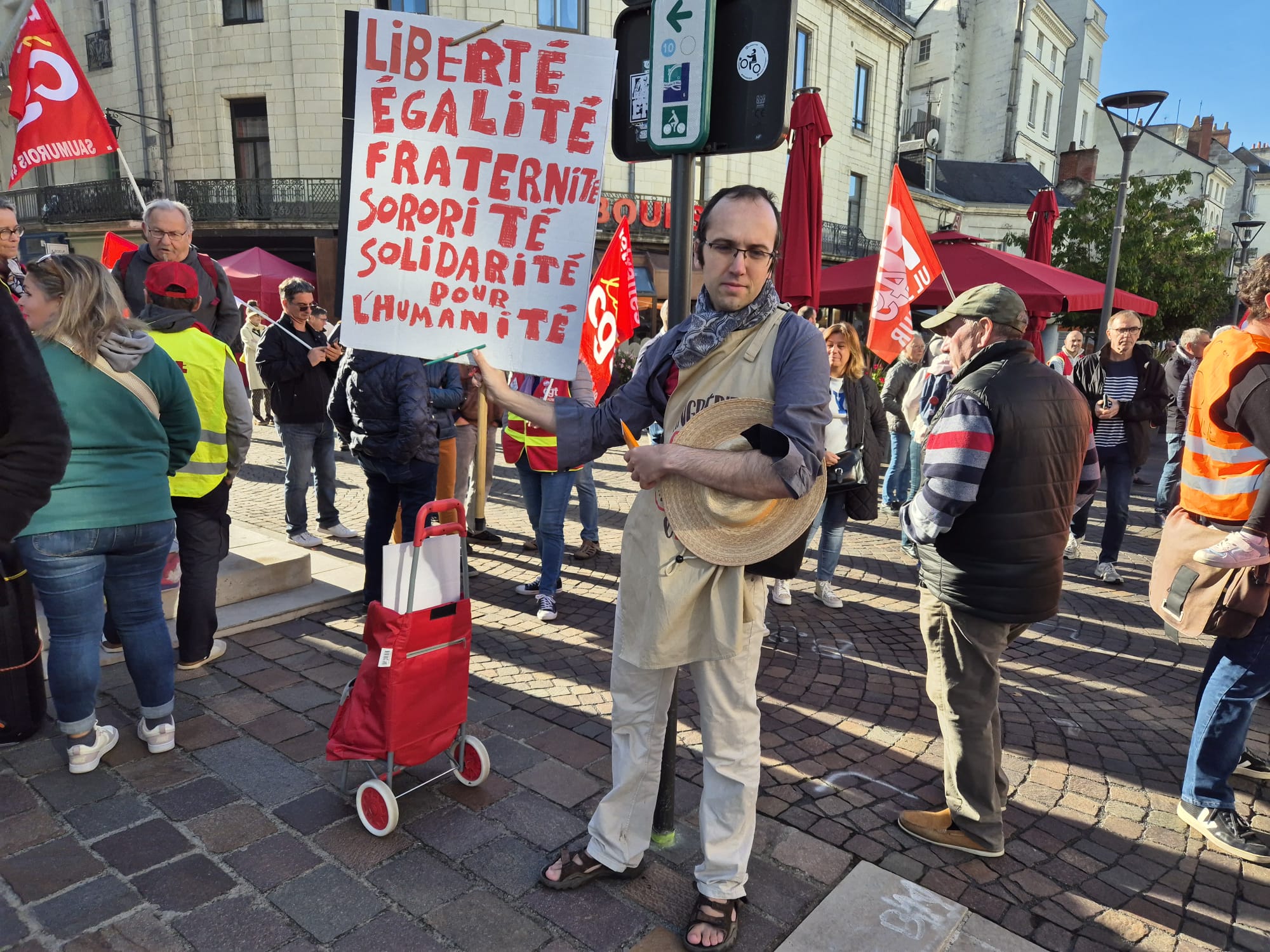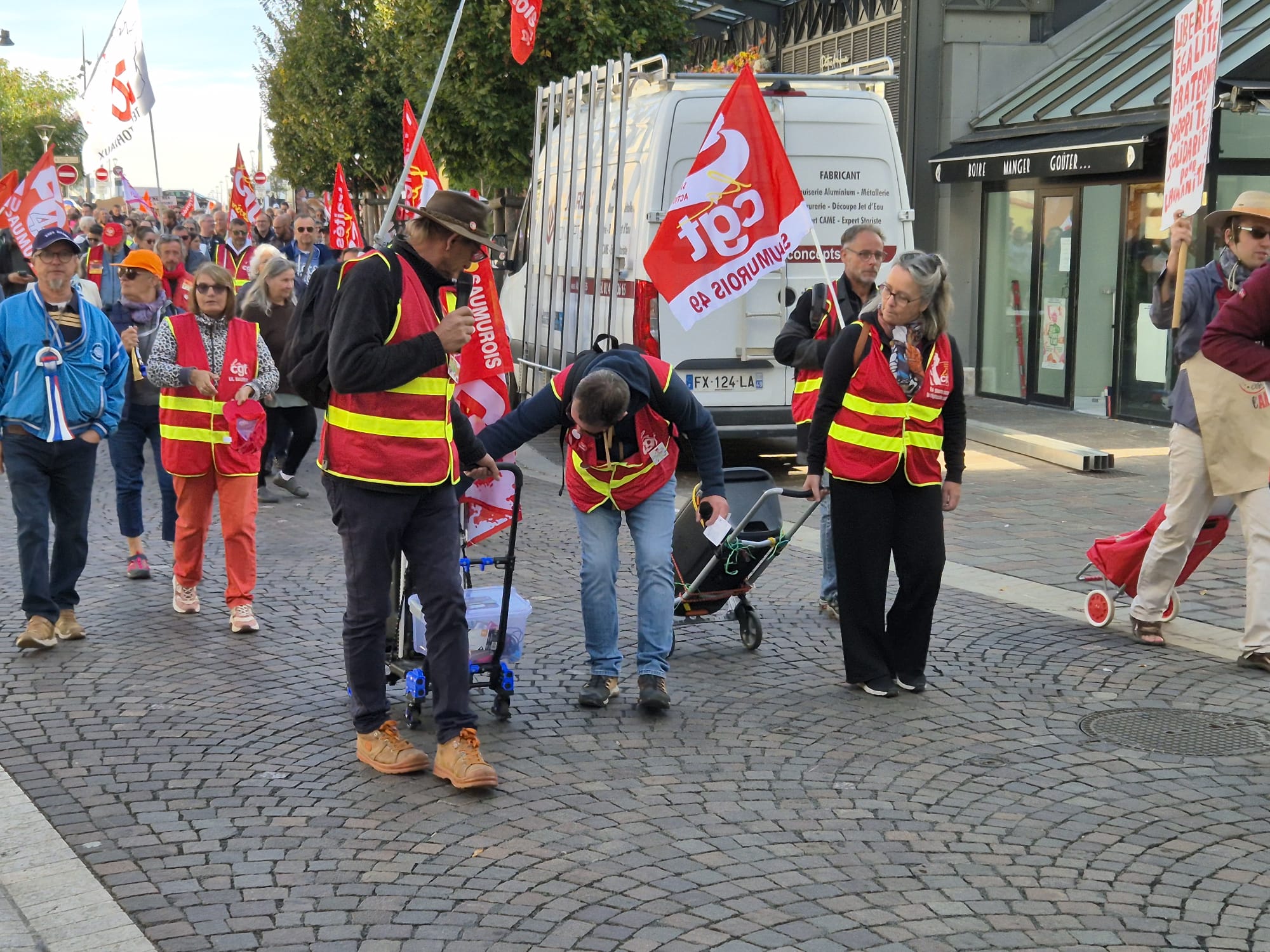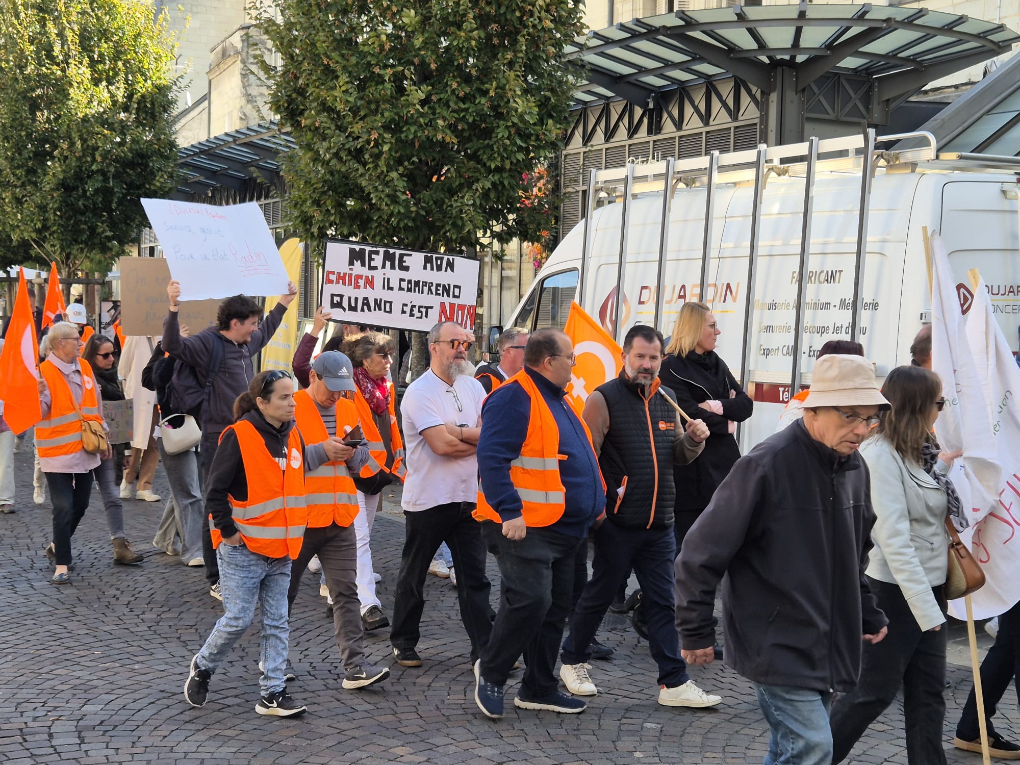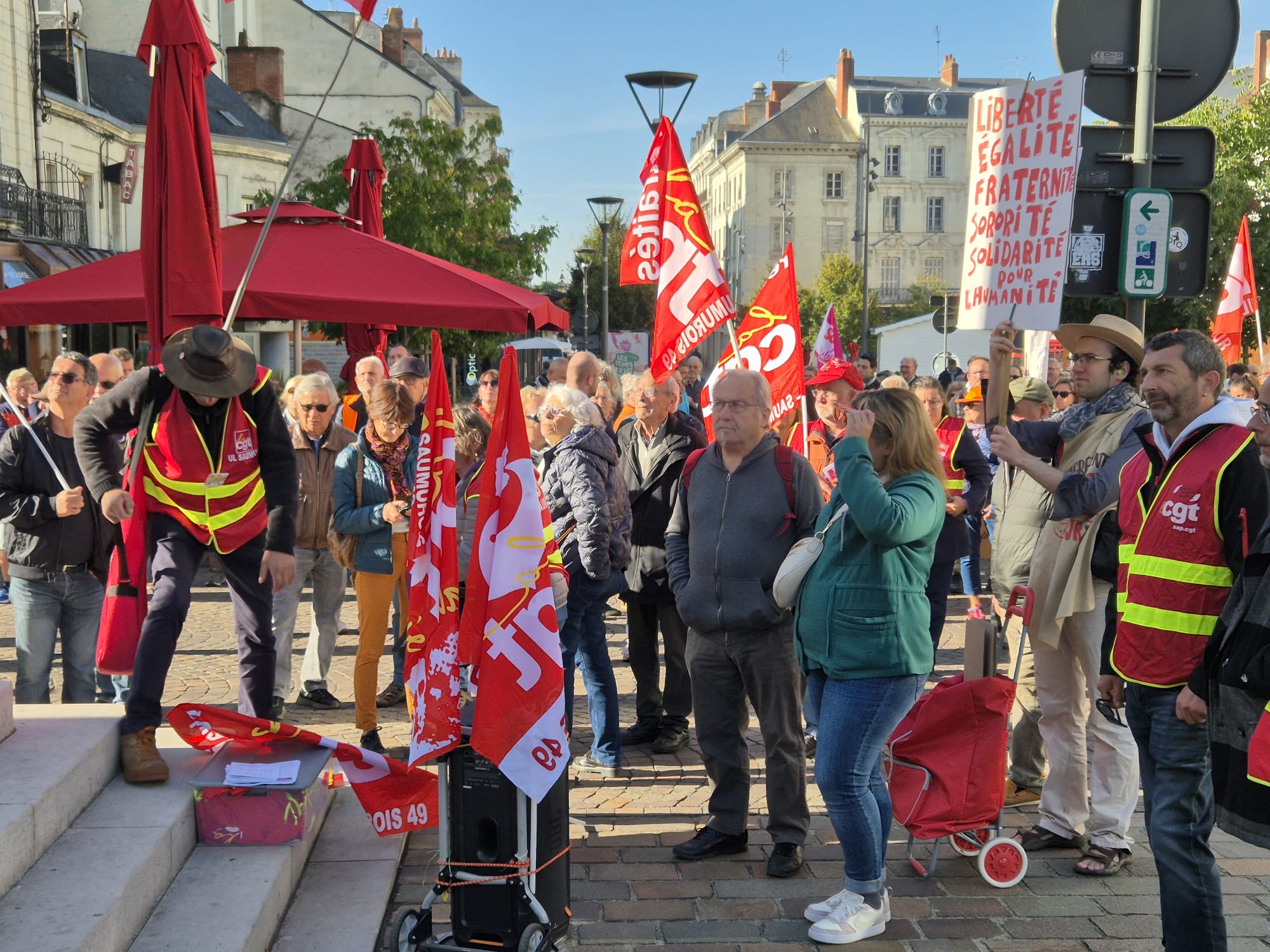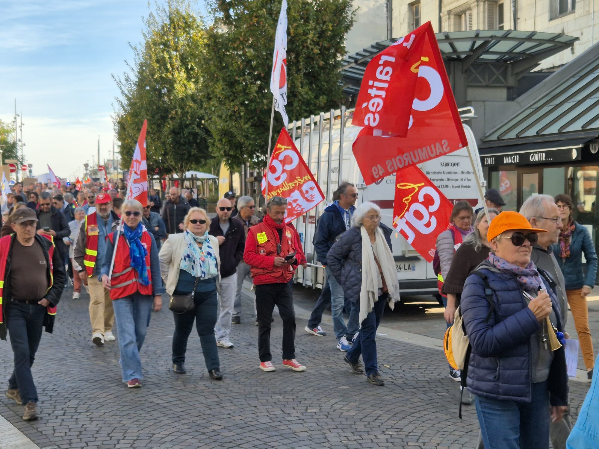 Ce jeudi 2 octobre, en écho aux précédentes journées de mobilisation des 11 et 18 septembre, l’intersyndicale avait donné rendez-vous pour une nouvelle manifestation. Toutefois, le mouvement a été moins suivi qu’en septembre dernier puisque l’on dénombrait 200 manifestants ce jeudi contre plus de 500 de la 18 septembre dernier. Le mot d’ordre reste malgré tout le même. L’intersyndicale exige : « L’abandon de l’ensemble du projet de budget et notamment le doublement des franchises médicales, l’année blanche (désindexation des pensions, des prestations sociales, des salaires des agent·es de la fonction publique et du budget des services publics), la suppression de 3000 postes de fonctionnaires et la réforme de l’assurance chômage, ainsi que des projets attaquant le code du travail, et le 1er mai ; La justice fiscale, avec la mise en place de dispositifs qui taxent les gros patrimoines et les très hauts revenus, et contraignent le versement des dividendes ; La conditionnalité sociale et environnementale des 211 milliards d’euros d’aides publiques aux entreprises privées ; Des moyens budgétaires à la hauteur pour les services publics partout sur le territoire ; Une protection sociale de haut niveau et l’abandon du recul de l’âge légal de départ à la retraite à 64 ans ; Des investissements dans une transition écologique juste et la réindustrialisation de la France, et des mesures contre les licenciements. »