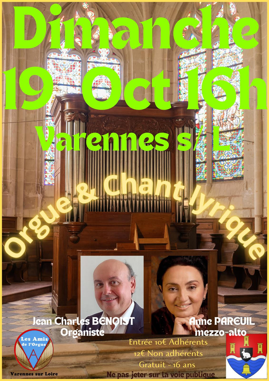 19 octobre à Varennes-sur-Loire. Concert d’orgue et chants lyriques