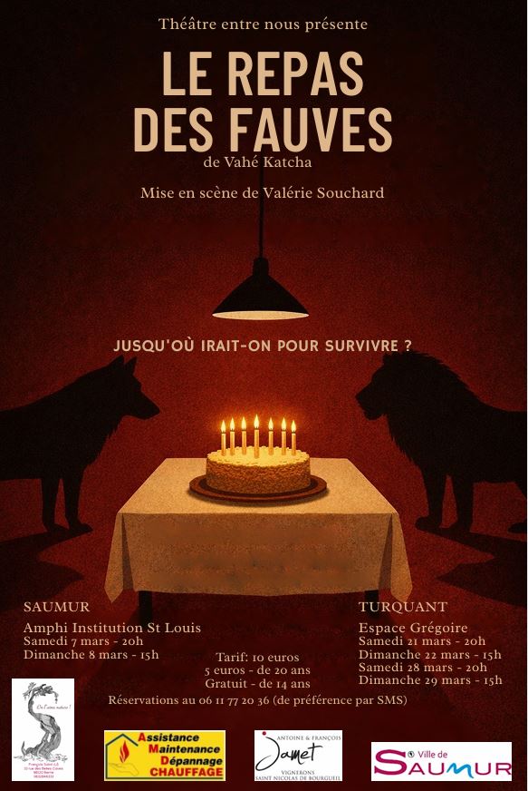 21, 22, 28 et 29 mars à Turquant. Théâtre : « le repas des fauves » par la troupe « Entre nous »