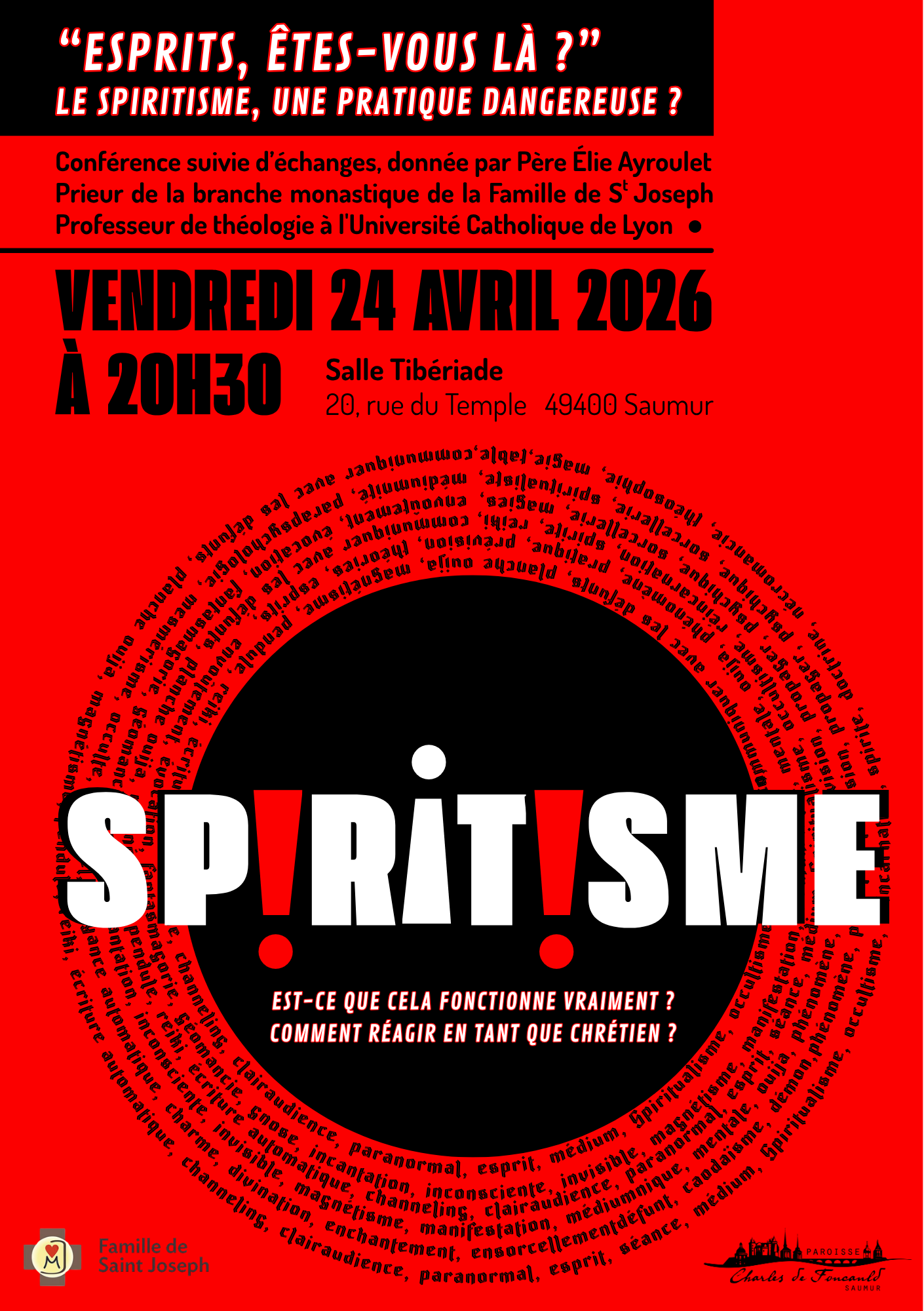 24 avril à Saumur. Conférence : « Esprit, es-tu là ? Le spiritisme, une pratique dangereuse ? »