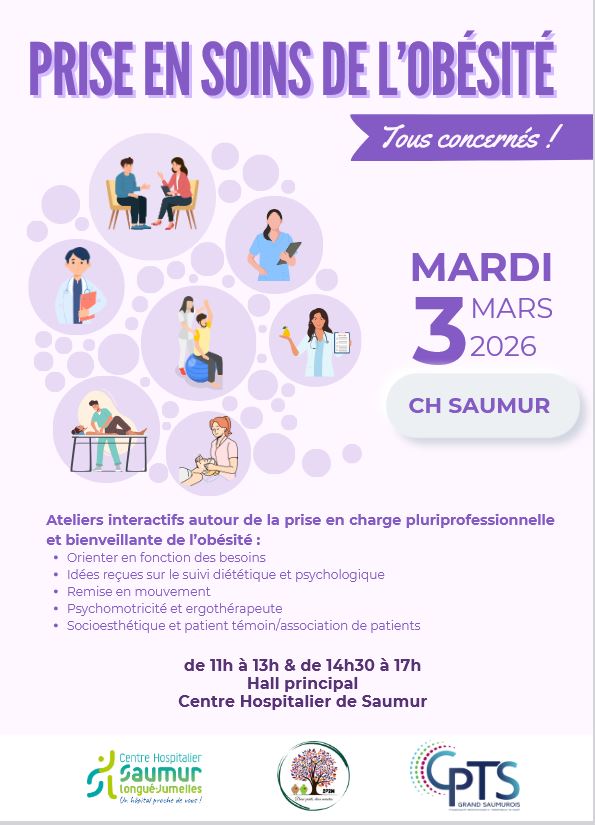 Le centre hospitalier de Saumur organise régulièrement des événements de sensibilisation pour le grand public. En mars, l’établissement de santé proposera une action autour de la prise en soins de l’obésité le 3 mars en lien avec la CPTS du Grand Saumurois. Au programme : Ateliers interactifs autour de la prise en charge pluriprofessionnelle et bienveillante de l’obésité : Orienter en fonction des besoins ; Idées reçues sur le suivi diététique et psychologique ; Remise en mouvement ; Psychomotricité et ergothérapeute ; Socioesthétique et patient témoin/association de patients.