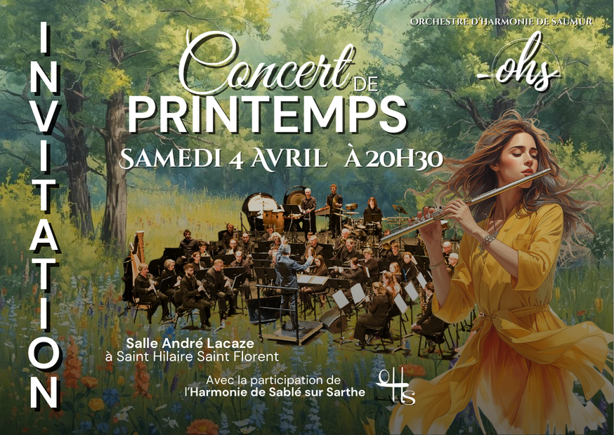 Les musiciens de l’Orchestre d’harmonie de Saumur se produiront le samedi 4 avril 2026 à 20 heures 30 dans la salle André Lacaze à Saint-Hilaire-Saint-Florent (Saumur). Pour la 2ème partie du concert, ils auront le plaisir d’accueillir l’Harmonie de Sablé-sur-Sarthe. Accès libre.