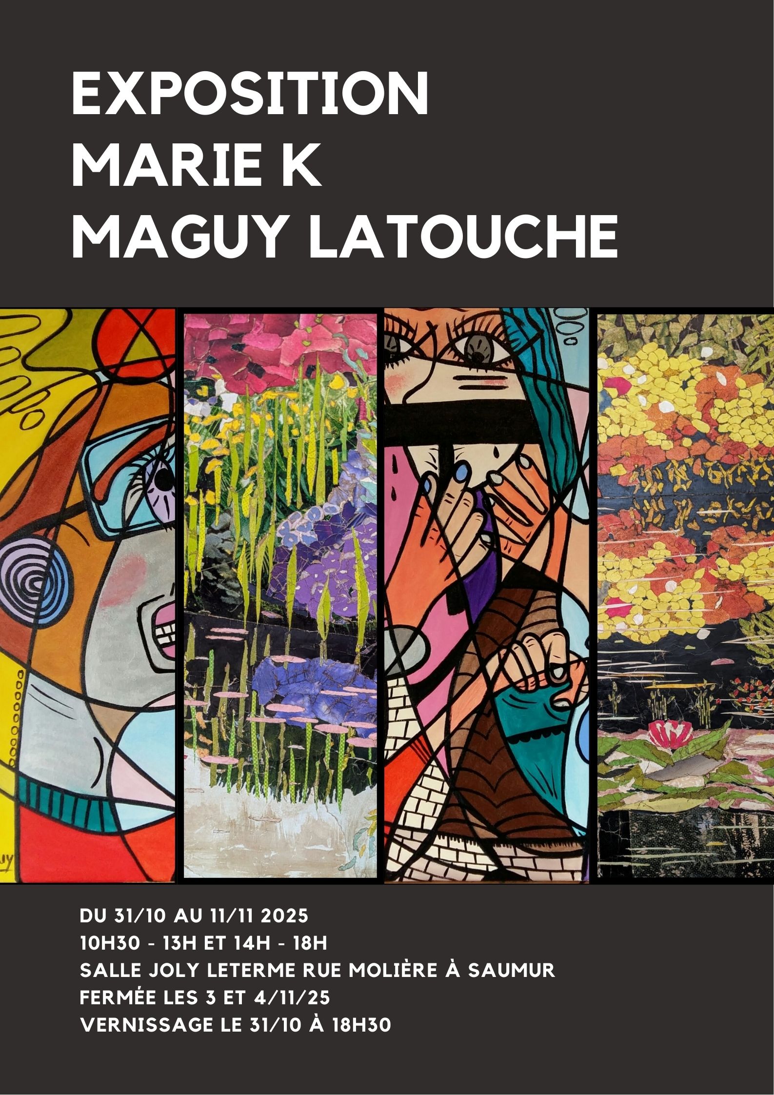 Du 31 octobre au 11 novembre à Saumur. Exposition : Peinture et Collage par Maguy Latouche et Marie K