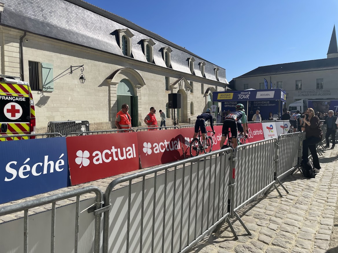 Le début de la première des quatre étapes de cette course cycliste. Les coureurs se sont lancés de l’Abbaye de Fontevraud sous un soleil estival et une foule chaleureuse malgré un départ en pleine semaine. Un parcours de 187,5 km jusqu’en Loire-Atlantique à Vertou. Première grande traversée entre Maine-et-Loire et Loire-Atlantique. Après un départ majestueux à Fontevraud-l’Abbaye, le peloton a serpenté dans les vignobles saumurois puis les reliefs des Mauges. La côte du Pont Barré (4 km à 4,7 %) lance les hostilités avant la Rouillère (0,9 km à 7,9 %), plus explosive. Le final proposait quatre passages sur le circuit de Vertou, technique et nerveux, propice aux offensives tardives comme à un sprint réduit. Au total, une vingtaine d’équipes hommes participent au Région Pays de la Loire Tour 2026 et autant d’équipes femmes à la Féminine. Les 5 départements seront une nouvelle fois mis à l’honneur à travers 720 km de parcours diversifié et technique, concocté par Laurent Drouault et son équipe. Ce lundi, Fontevraud-L’Abbaye s’était transformé en véritable village de départ avec des animations et des stands sur la place des Plantagenêts et dans la cours de l’Abbaye.