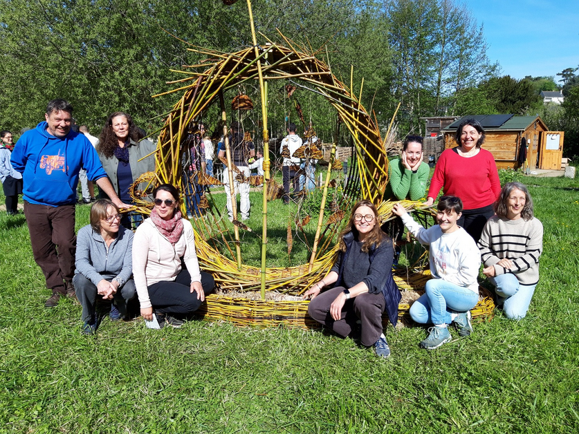Les stagiaires de la session vannerie de la MFR Les Vergers de Gennes ont réalisé une véritable sculpture végétale au sein du jardin pédagogique de l’association Les Enfants Qui Sèment.