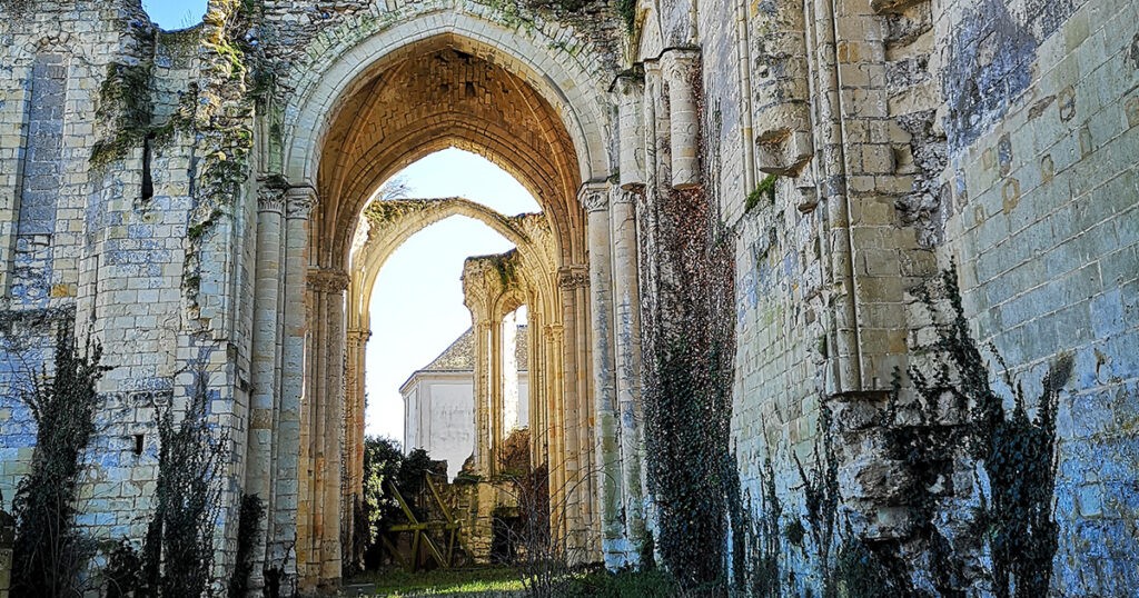L’église Saint Denis dédiée en 1040 et devient collégiale en 1063 avec la création d’un chapitre de quatre chanoines, richement doté par les seigneurs de Doué. Reconstruite au XIIème siècle puis désaffectée en 1806, elle sera rachetée par la commune en 1889 qui commencera à la consolider. Cette église en forme de croix latine se compose d’une grande nef et d’un chœur circulaire. À l’origine, l’édifice mesurait 51 m de long pour 33 m de large. À la croisée du transept s’élevait autrefois un puissant clocher. Pour des raisons sécuritaires, son accès est interdit. Néanmoins, on peut apercevoir à travers la grille du transept sud de magnifiques chapiteaux romans et une partie de la voûte Plantagenêt.