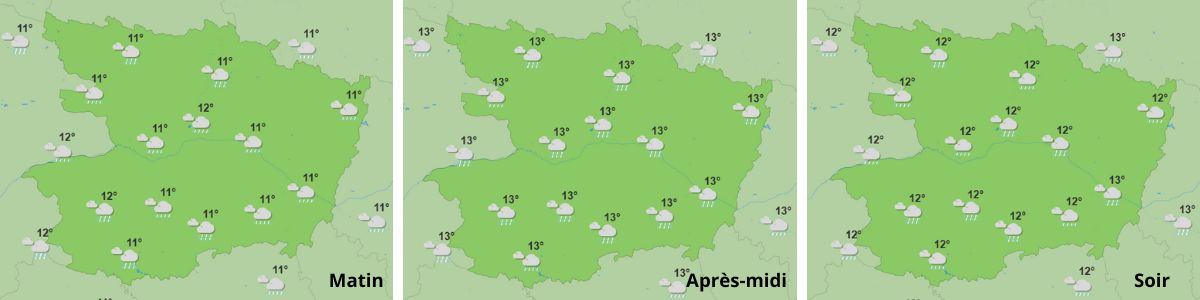 Le ciel sera très gris et la pluie tombera sans discontinuer toute la journée. Les précipitations pourraient parfois être assez intenses localement. Les températures seront comprises entre 11°C et 13°C en moyenne. Nous fêterons les Arnaud !