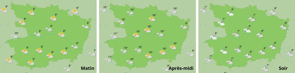Le ciel sera très couvert tout au long de la journée avec une alternance entre quelques éclaircies et des pluies de faible intensité. Les températures seront comprises entre 9°C et 10°C en moyenne. Nous fêterons les Viviane !
