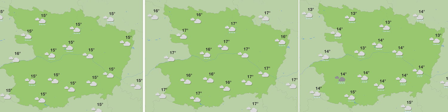 La matinée et l’après-midi de mardi vont se ressembler, la grisaille sera omniprésente et des pluies localisées tomberont çà et là. La situation pluvieuse va se généraliser durant la soirée avec parfois des chutes plus fortes. Les températures seront comprises entre 15°C et 17°C en moyenne. Nous fêterons les Céline !