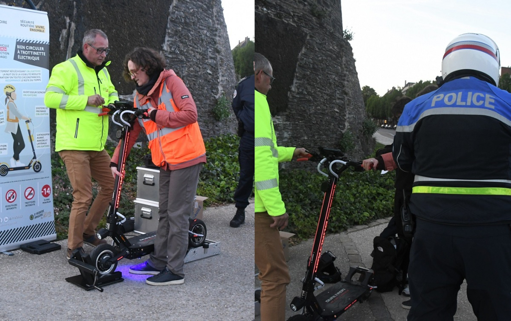 Une opération de contrôle des trottinettes et autres engins électriques, ainsi que des cycles, a été menée à Angers cette semaine. Elle a notamment permis la première utilisation d’un curvomètre pour vérifier le respect de la réglementation. Un curvomètre, quèsaco ? Il s’agit selon la préfecture de Maine-et-Loire d’un « nouvel outil qui permet aux forces de sécurité de vérifier que les trottinettes et vélos électriques respectent la vitesse maximale autorisée de 25 km/h et ne sont pas débridés. » Un peu dans l’esprit d’un banc de puissance pour les voitures et les motos il permet de simuler le déplacement et l’accélération d’une trottinette et d’en déterminer sa puissance. « Cette action s’inscrit dans la mobilisation des services de l’État visant à renforcer la sécurité de l’ensemble des usagers et à prévenir les comportements à risque », souligne la préfecture.