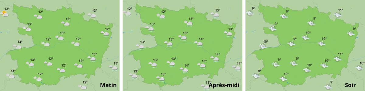 Lundi : D’après les prévisions de Météo France, les éclaircies domineront largement le ciel tout au long de cette entame de semaine, avec même un ciel presque entièrement dégagé le soir. Les températures seront comprises entre 11°C et 15°C en moyenne.