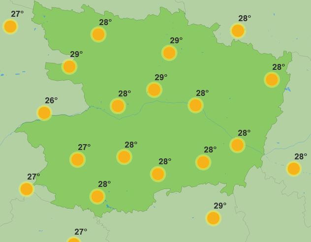 Demain, le temps sera toujours aussi estival, très ensoleillé et chaud. En effet, le ciel sera dégagé tout au long de la journée avec une couverture nuageuse absolument nulle. Le mercure sera déjà haut dès le début de journée avec 22 degrés en moyenne en matinée. Dans l’après-midi le thermomètre affichera jusqu’à 32 degrés. Le soir, il fera encore 28 degrés.