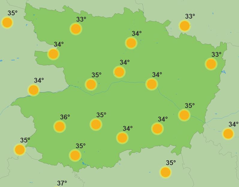 Demain, le temps sera encore ensoleillé et caniculaire. Le matin, il fera déjà 25 degrés en moyenne. Dans la journée, le mercure grimpera jusqu’à 37 degrés. En soirée, nous aurons 34 à 35 degrés. Les températures redescendront donc assez peu le soir. Le soleil sera quant à lui présent du matin au soir.