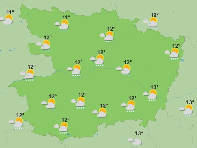Dimanche, la pluie sera au rendez-vous le matin et dans l’après-midi pour le Saumurois avec des précipitations qui partiront progressivement vers l’est. En soirée le temps sera ensoleillé. Il fera 9 en journée, 11 en journée et 5 à 7 en soirée.