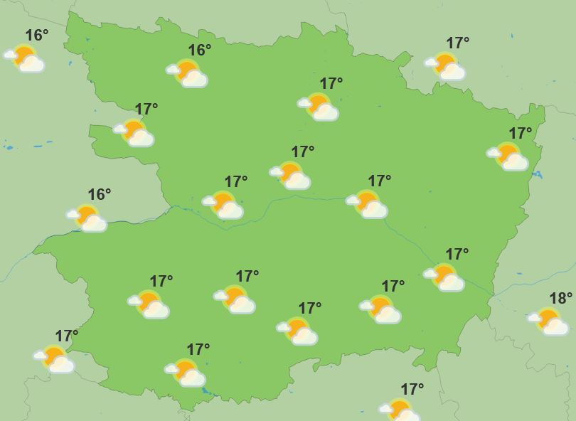 Lundi matin nous aurons une nouvelle fois de la pluie sur l’ensemble du département avec 15 degrés. Dans la journée et en soirée, le temps sera plus ensoleillé, mais toujours nuageux avec 21 à 23 degrés.
