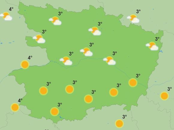 Ce weekend, nous aurons une météo dans l’ensemble très clémente et ensoleillée malgré la présence de quelques nuages dans le ciel de temps à autre. Le temps s’annoncera également assez doux avec pour la journée de samedi 0 à 1 degré le matin, 9 degrés en journée et 4 à 5 le soir. Le dimanche il fera 2 à 3 degrés la matin, 9 en journée et de nouveau 3 degrés en soirée. Pour lundi enfin, nous aurons 3 à 4 degrés le matin, 7 à 9 dans l’après-midi et 7 en soirée.