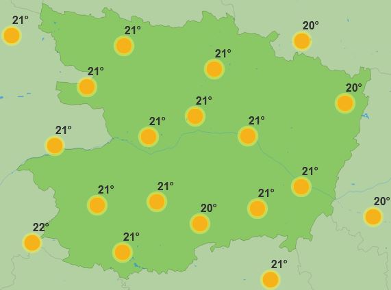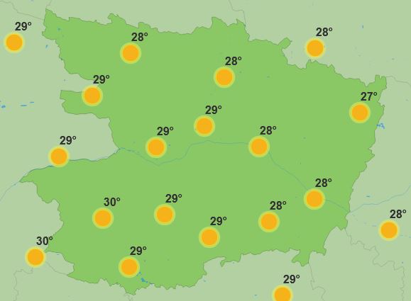 Samedi, le soleil sera présent du matin au soir. Le matin, il fera 21 degrés. Dans la journée le mercure montera jusqu’à 30 degrés. En soirée, il fera toujours 28 à 29 degrés.