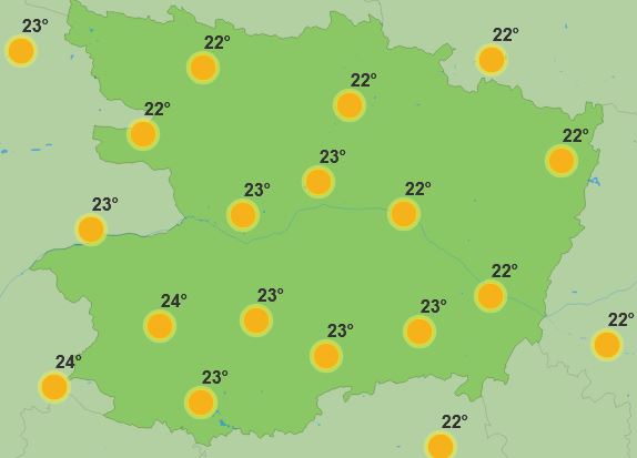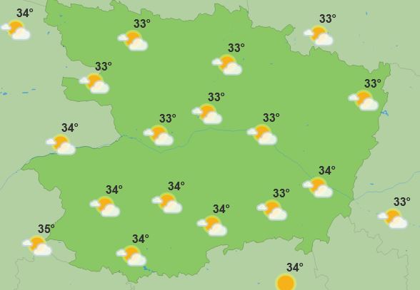 Lundi sera la journée la plus chaude. Le matin, il fera 22 à 23 degrés et le ciel sera dégagé. Dans la journée le temps sera toujours ensoleillé et il fera 37 à 38 degrés. Le soir, nous aurons 39 degrés.