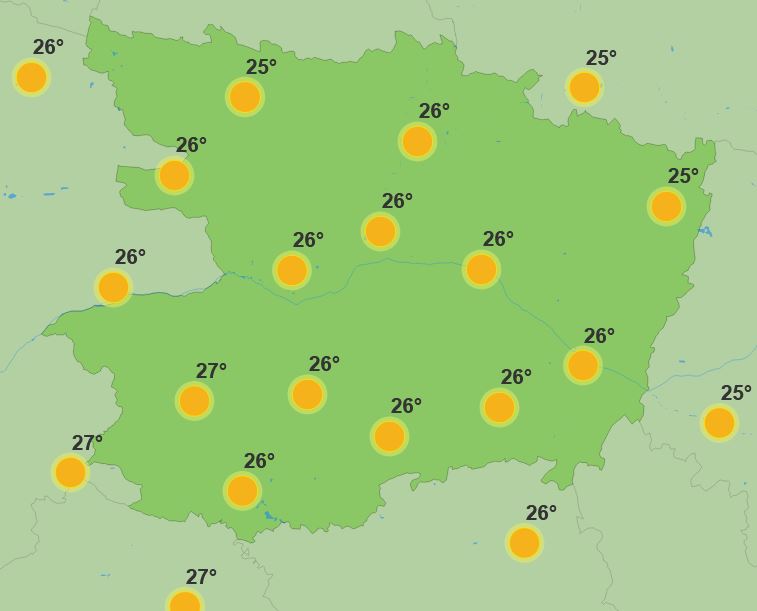 Samedi matin, il fera 16 à 17 degrés et le ciel sera d’azur sur l’ensemble du département. Dans la journée il fera 26 degrés et nous aurons 24 degrés en soirée. Le soleil restera présent tout au long de la journée.
