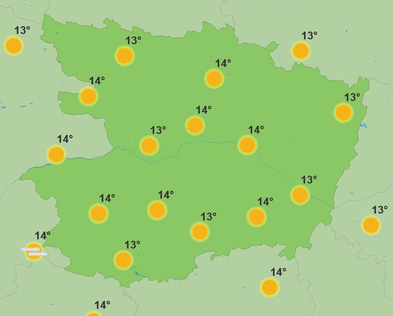 Le temps sera au beau fixe tout au long du weekend avec aucun nuages annoncé pour ce samedi ou ce dimanche. Samedi les températures seront de 10 en matinée, 19 en journée et 14 en soirée. Le dimanche nous aurons 12 le matin, jusqu’à 20 en journée et 12 en soirée. Lundi le temps restera beau même si un léger voile nuageux sera présent au dessus de nos tête. Le temps ne sera pas foncièrement couvert pour autant et le ciel restera lumineux. Il fera 14 le matin, 18 en moyenne dans la journée et 17 en soirée.