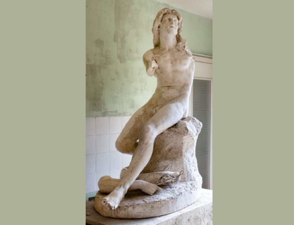La carrière de Jules Desbois démarre alors qu’il n’a qu’une vingtaine d’années. Une sculpture retient tout particulièrement l’attention du salon de 1875 : Orphée, une œuvre en plâtre qui impressionne autant par sa taille que par sa qualité technique. Ce premier succès, recevra un prix et l’Etat achètera cette œuvre qui tombera progressivement dans l’oubli. Déplacée et détériorée, elle sera considérée comme perdue vers 1960. Cette œuvre de jeunesse est redécouverte en 2022 à Château-Gontier. Cette exposition explore la jeunesse de Jules Desbois et présente également une nouvelle acquisition datant de ses années de formation. Abîmée par le temps, Orphée fera l’objet toute la saison d’une patiente restauration dont certaines séances seront ouvertes au public, afin de redonner à cette œuvre toute sa splendeur.