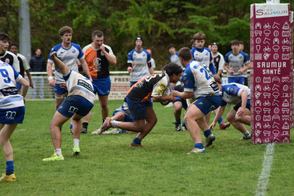 Dans une demi-finale maîtrisée, les Saumurois ont rapidement pris le contrôle du match. Après une pénalité d’Imanol Avril (11e), Pierre Brochain puis Enzo Soirat ont concrétisé la domination locale avant la pause (17-0). Au retour des vestiaires, Saumur a confirmé sa supériorité avec de nouveaux essais signés Ylann Ferreira, un doublé de Brochain et une conclusion en force de Dicko Talbi. Malgré trois essais inscrits par Ambition 53, l’écart n’a jamais été réellement menacé. Avec cinq essais inscrits, une conquête solide et un jeu collectif abouti, les joueurs de l’entente ont validé une qualification logique.