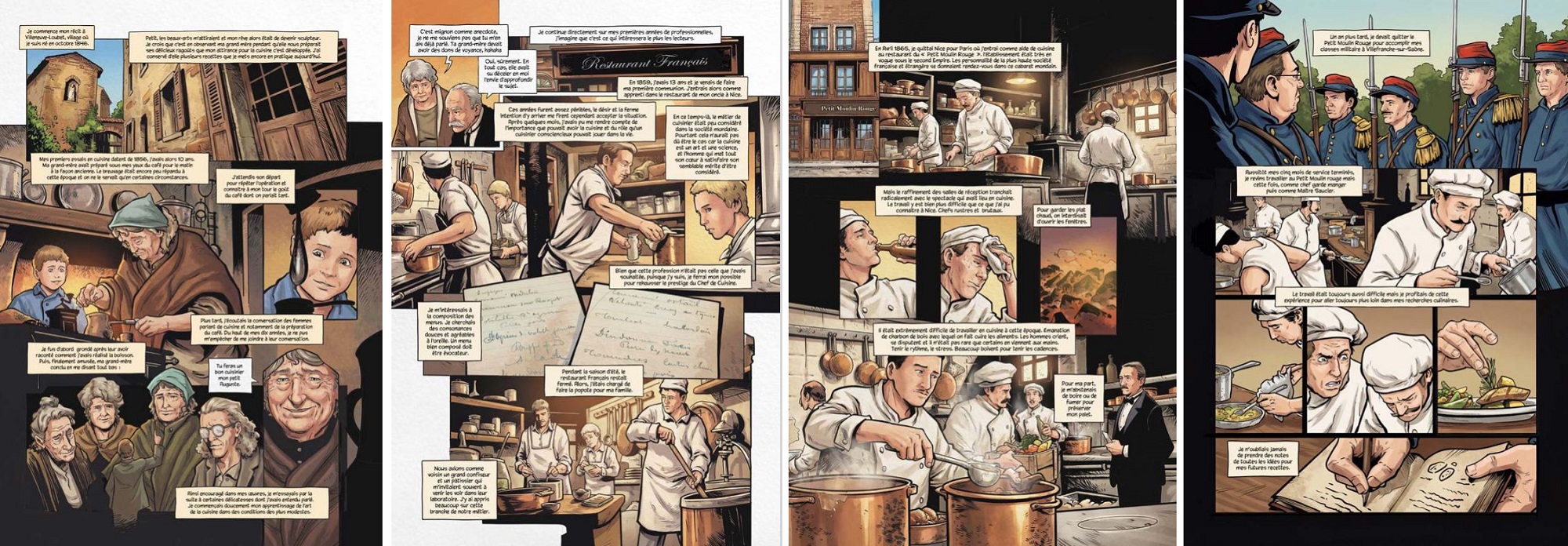 Infos pratiques : « Auguste Escoffier : Maître de la cuisine moderne » (éditions Plein vent). Parution Mai 2026. Format 240 x 320. 56 pages. 16,90 €. A découvrir les 11 et 12 avril lors des Journées du Livre et du Vin. Une exposition de quelques planches sera prochainement à découvrir dans le parc du château de Saumur durant 4 mois.