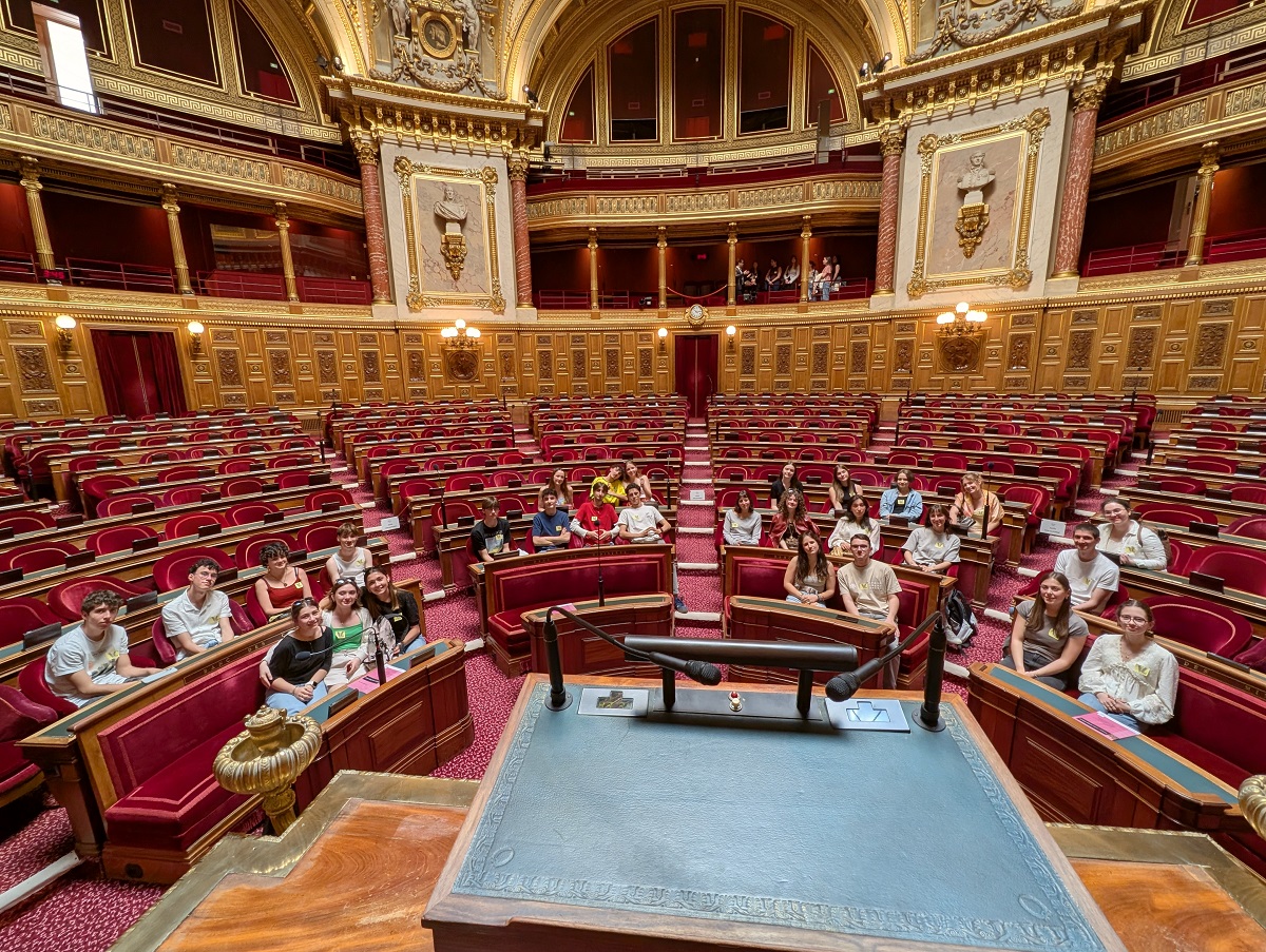 Moment fort du séjour, la visite du Sénat, rendue possible grâce à l’invitation du Sénateur Stéphane Piednoir. Les élèves ont pu s’installer dans l’hémicycle, prendre place dans les sièges habituellement occupés par les sénateurs et découvrir concrètement le fonctionnement des institutions. Très disponible, M. Piednoir a pris le temps d’échanger avec les lycéens et de leur expliquer le quotidien d’un élu ainsi que les mécanismes du débat et du vote parlementaire.