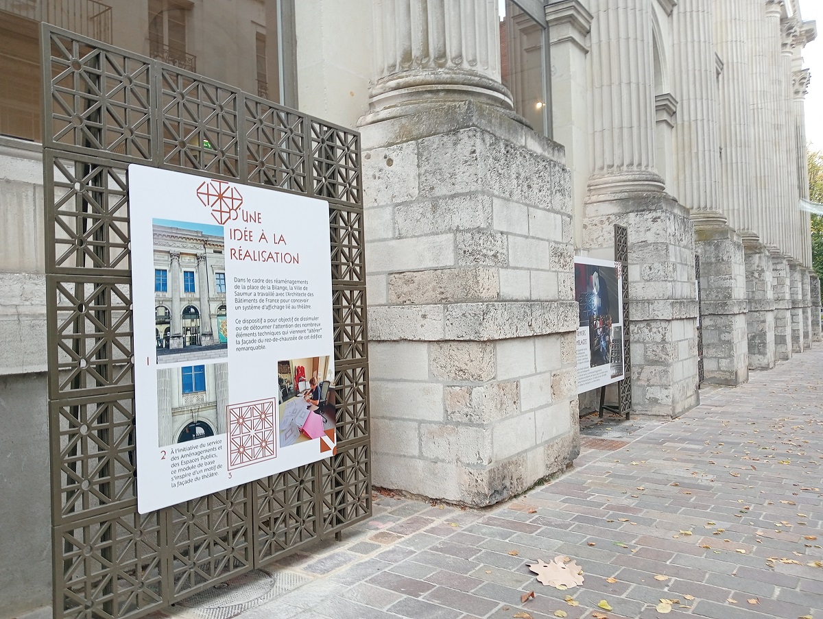 Depuis quelques temps, des grilles d’acier ont pris place le long du théâtre du Dôme, sur la rue Molière. Dans le cadre du réaménagement de la place de la Bilange, la ville de Saumur a en effet souhaité réaliser, en accord avec l’Architecte des Bâtiments de France, un système d’affichage au pied du théâtre. Ces grilles, à la fois esthétiques et fonctionnelles ont été réalisées par l’école de production T’CAP T’PRO, installée dans la zone Ecoparc à Saint-Lambert-des-Levées. « Ces grilles ont pour objectif de cacher différents éléments qui ne sont pas des plus beaux, mais pourtant nécessaires en matière de services techniques, notamment des aérations et des bornes pour les pompiers. Je m’étais engagé auprès de l’école de production lors d’une visite de passer une commande qui puisse répondre à un besoin de la collectivité et mettre en avant la valeur de l’établissement et du travail effectué par les élèves. Ils ont réalisé un travail magnifique, solide et aux finitions particulièrement réussies », souligne le maire de Saumur, Jackie Goulet. Après avoir mis en avant la section métallerie soudure de l’école saumuroise, la ville passera une commande à la filière couture pour une trentaine de doudounes à destinations des équipes du Château. « C’est une manière de contribuer à cette école pour laquelle nous ne versons pas d’argent directement », poursuit l’élu. Ces grilles ont été dessinées en s’inspirant d’un des motifs présent sur la façade du théâtre du Dôme.