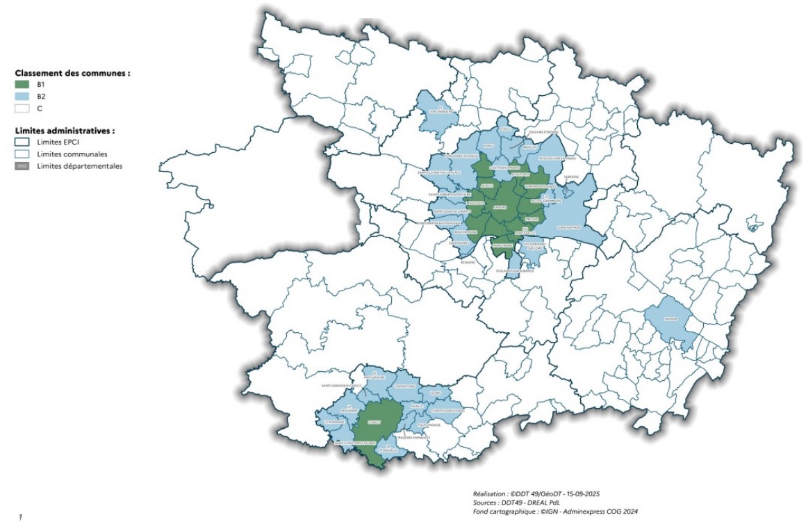 Dans le Maine-et-Loire, la majorité des communes demeure classée en zone C, correspondant à des marchés immobiliers peu tendus. Le département compte désormais 27 communes en zone B2 et 13 communes en zone B1, traduisant la volonté d’ajuster les outils publics aux réalités locales et d’accompagner les territoires confrontés à une pression croissante sur le logement.