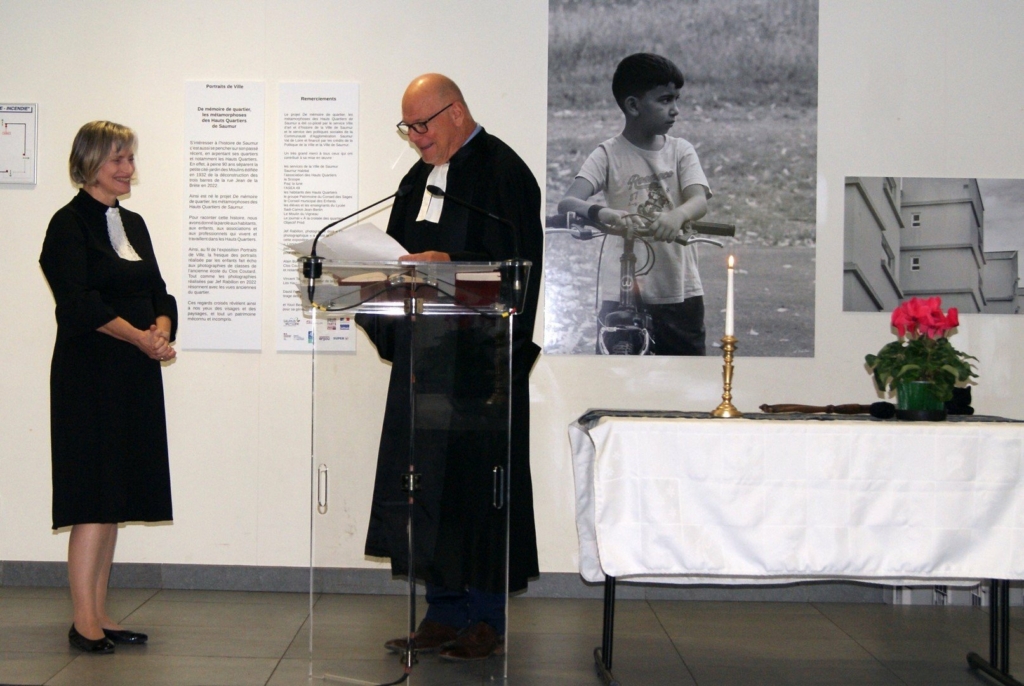 Dimanche 23 octobre 2022 s’est tenu le culte d’installation de la nouvelle pasteure de l’église protestante réformée de Saumur, dans la salle des Hauts Quartier à Saumur, puisque le Temple est lui en travaux jusqu’à l’été prochain. Cela fait deux années que la paroisse de Saumur était sans pasteur. La commission des Ministères de la l’Église Protestante Unie de France (EPUdF anciennement ERF ou Église Réformée française), qui décide de l’implantation et de la nomination des pasteurs en France, a décidé d’envoyer sur Saumur Laura Ausderau. Il s’agit de la première femme à occuper ce rôle dans la paroisse qui compte un peu plus de 130 familles. Sur le site de l’Eglise protestante unie de France, elle confiait il y a quelques semaines : « En stage à Sanary-sur-Mer depuis septembre 2021 jusqu’à fin juin de cette année, où de beaux moments, enseignements et rencontres ont étés vécus, voici que je débute mon proposanat dans cette belle ville de Saumur. Auparavant, j’ai obtenu ma licence et mon master à la Faculté protestante autonome de théologie à Genève, ainsi qu’un master Arts et Société à l’Institut protestant de Paris fin juin 2022. J’ai eu la chance également d’avoir exercé deux autres métiers, fondé une famille et vécu en Finlande pendant dix-huit ans, où j’ai été active bénévolement en paroisse luthérienne. Je me réjouis de débuter ce proposanat à Saumur (Maine-et-Loire), que je conçois comme un moment charnière de mise en pratique et d’apprentissage du métier de théologien et de pasteur. C’est aussi un challenge exigeant que je comprends comme une écoute et un accompagnement actifs, un témoignage et un service envers Dieu et envers autrui. »
