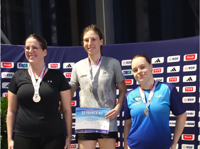 Les 14 et 15 février à Libourne, deux nageuses du club participaient aux Championnats de France N2 Masters. En catégorie C1, Nolwenn s’est distinguée sur plusieurs épreuves avec notamment une 5ᵉ place au 50 m brasse en 45.23. Elle termine également 22ᵉ du 50 m nage libre (35.08), 16ᵉ du 100 m nage libre (1:19.87) et 15ᵉ du 100 m quatre nages (1:30.81).