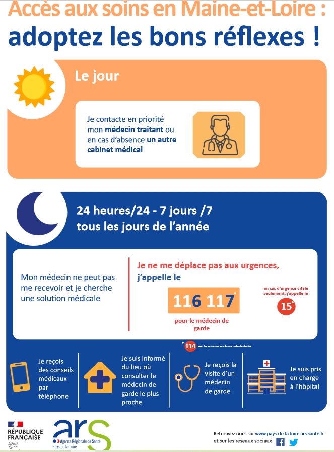– A défaut, 24h/24h et 7j/7j, j’appelle le 116-117 ( ou le 114 pour les personnes malentendantes) pour le médecin de garde.