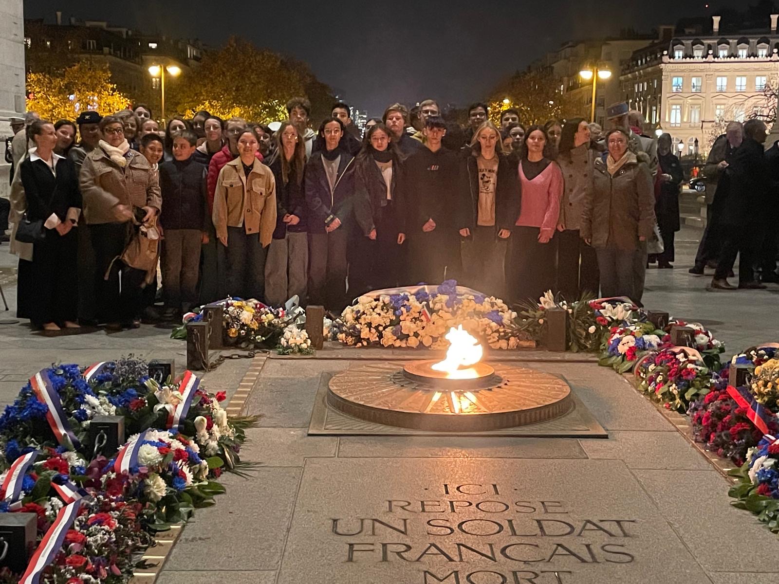 La matinée a débuté par une visite du Sénat, où les élèves ont découvert l’un des lieux majeurs de la vie démocratique française. De la salle des séances au jardin du Luxembourg, la visite a permis de comprendre le rôle du Sénat et la mission des parlementaires. Le groupe a pris ensuite la direction des Invalides, haut lieu de mémoire nationale. L’après-midi a été consacré à deux visites thématiques : la vie des civils durant la Première Guerre mondiale et le rôle des femmes pendant le conflit. Deux approches différentes mais complémentaires, qui ont permis de mieux saisir la mobilisation de la société française face à l’épreuve de la guerre. En fin de journée, les élèves ont participé à un moment particulièrement solennel et émouvant : le ravivage de la Flamme du Soldat inconnu, à l’Arc de Triomphe. Ce geste symbolique, auquel participent chaque jour des associations et établissements scolaires, incarne la transmission du souvenir et le respect envers ceux qui ont donné leur vie pour la France. Après cette journée dense et chargée d’émotions, retour à Saint-Louis après une expérience marquante pour les élèves, qui ont pu vivre au plus près les valeurs citoyennes et mémorielles portées par la classe Défense.