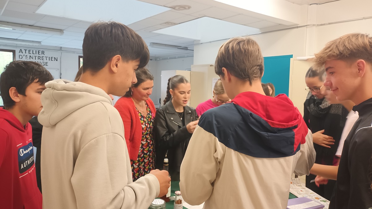 Par la suite, la classe de seconde générale a découvert un autre atelier, celui de la naturopathie dans une salle aux senteurs de lavande et d’huiles essentielles. Cet atelier de dégustation de produits naturels dirigé par Sandy Peigné, professeure au lycée, a plu et a rendu le sourire sur les visages. Enfin, ce fut l’heure du dernier atelier, dans la salle de classe la plus chaude du lycée : l’atelier yoga organisé par Bianca Barrault, professeure de yoga et ostéopathe. Tapis au sol et rires ont permis à tout le monde de tester son équilibre dans la bonne humeur avant de terminer par quelques étirements indispensables pour le bien-être de son corps. L’activité physique adaptée (APA) a également trouvé sa place parmi les autres ateliers avec Lise Métivier, une intervenante professeur d’APA qui vient de lancer son entreprise. Elle a mis l’accent sur l’importance, dès le plus jeune âge, de pratiquer une activité physique, en prenant l’exemple des effets positifs sur un enfant de 3 ans : cela développe son équilibre et son lien social. Le but est de lutter contre la sédentarité. Jean Levrault, gérant de l’Appart’Fitness et coach sportif était également présent pour faire pratiquer des activités physiques aux élèves et parler de son métier, de sa formation… En outre, en cuisine, Myriam Bourdin, professeure au lycée, a proposé des jeux de société créés spécialement pour les lycéens. On retrouvait notamment une revisite du Trivial Pursuit avec, par exemple, des questions réponses sur l’alimentation saine et un jeu des 7 familles sur les différentes catégories d’aliments (féculent, produits sucrés, fruits et légumes, viande/poisson/œuf…).