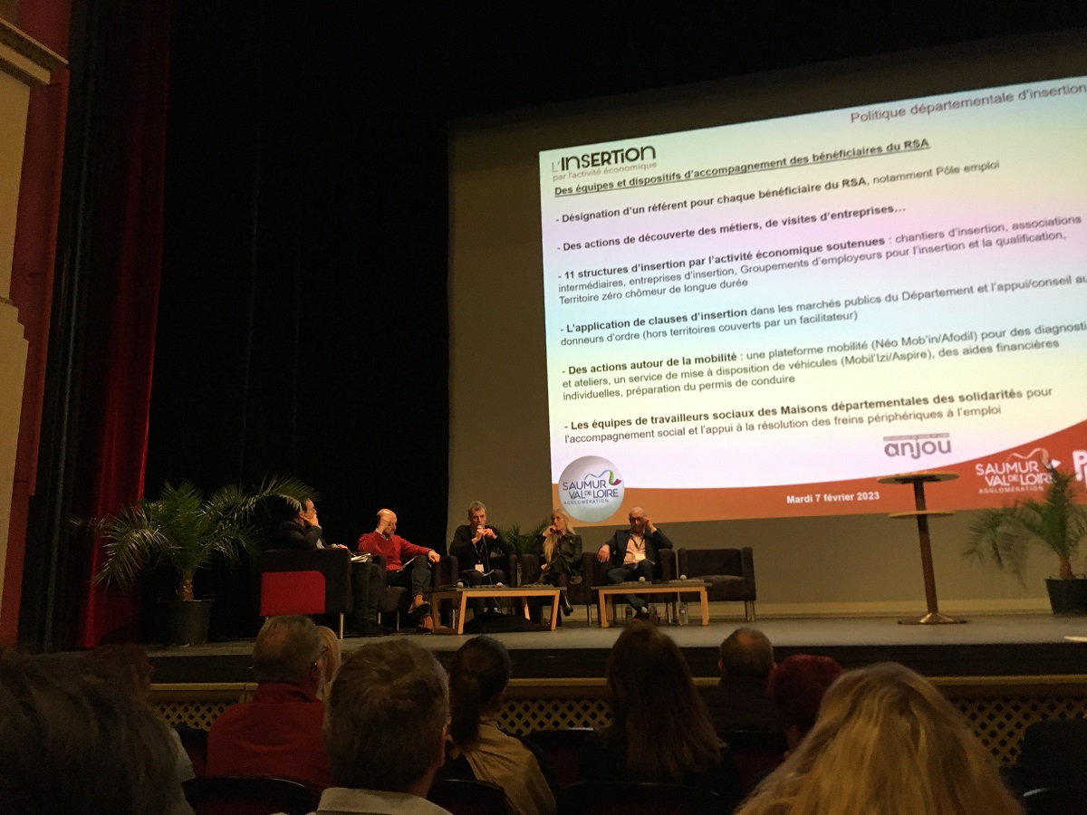 L’insertion est un dispositif et une valeur bien implantée en Saumurois grâce notamment à « la volonté des politiques, à celle des entreprises et des structures d’insertion », comme le souligne le vice-président de l’agglomération Saumur Val de Loire en charge de l’insertion, Guy Bertin, ordonnateur de l’événement. Il précise : « Nous avons sur notre territoire un certain nombre de personnes éloignées de l’emploi et l’insertion est bien un des moyen de leur donner un emploi. A l’origine, nous avions intégré des clauses d’insertion dans les marchés publics qui permettaient que les entreprises répondantes intègrent un certain nombre d’heures d’insertion. Nous avons eu des années à plus de 140 000 heures d’insertion. » Et d’ajouter enfin : « L’insertion répond à des besoins dans bien des domaines : services, alimentation, agriculture, BTP, transport, logistique… Dernière création en date dans ce domaine, l’entreprise à but d’emploi Asure, issue du dispositif Territoire Zéro chômeur de Longue Durée. Elle permet à des personnes très éloignées de l’emploi de travailler en fonction de leur capacités et de participer à l’activité économique. » Patrice Cadeau, responsable du volet insertion au sein de la DDETS (Direction départementale de l’emploi, du travail et des solidarités) indique qu’en Maine-et-Loire cela représente « 20 millions d’euros investis par l’État, 1 655 équivalents temps plein financés par l’État et 5 785 salariés ». Des chiffres particulièrement importants et évocateurs. De son côté, le Département de Maine-et-Loire, compétent en la matière, engage chaque année environ 100 millions d’euros, dont 88 millions d’euros pour financer les bénéficiaires du RSA. « On en compte un peu plus de 3 000 sur l’agglomération Saumur Val de Loire, ce qui représente 16.2% des foyers du Maine-et-Loire », rappelle Sébastien Landeau, directeur insertion au Département. Il en dresse le portrait-robot : « Il s’agit en grande majorité de personnes de plus de 40 ans, à 56% des femmes, et avec une grande diversité de profils, notamment du point de vue de la formation. »