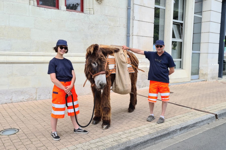 Ce lundi 1er août le très moderne et très suivi média Brut a diffusé un reportage sur le service de nettoyage de la ville de Saumur qui utilise deux ânes....